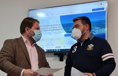 El alcalde de Manilva, Mario Jiménez, el concejal de Formación, Marcos Ruiz y ...