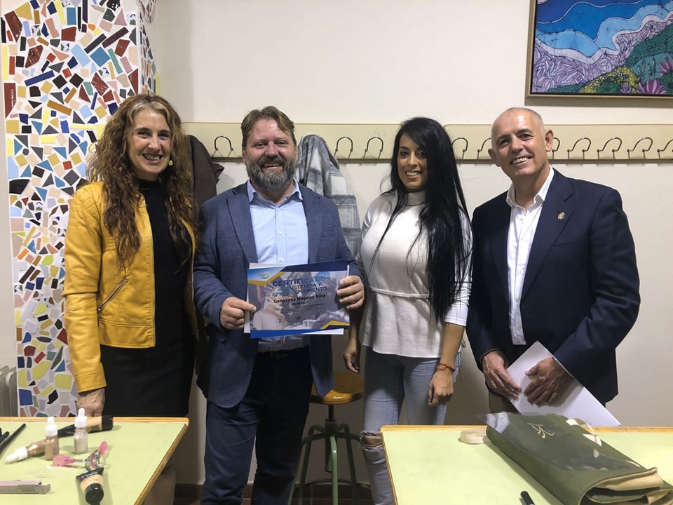 El alcalde, Mario Jiménez, el concejal de Formación, Marcos Ruiz y la directora de área, Pilar Zúñiga, han estado presentes en la clausura del taller de Automaquillaje, impartido por Marina Ledesma.