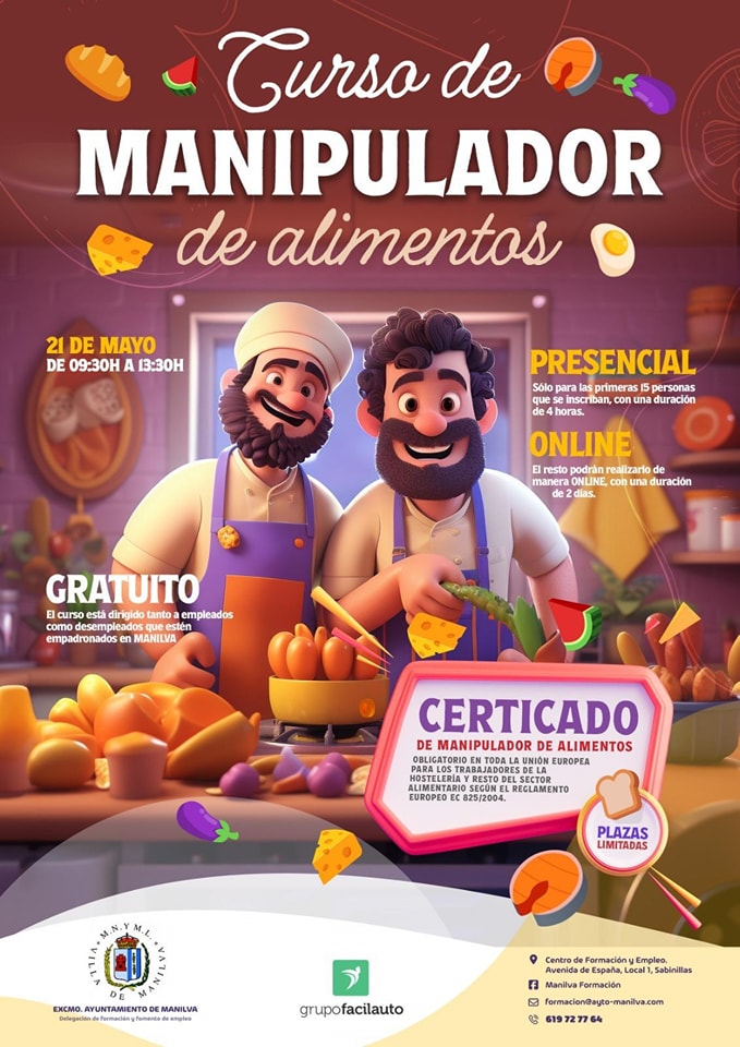 La Concejalía de Formación del Ayuntamiento de Manilva pone en marcha un nuevo curso gratuito de Manipulador de Alimentos, dirigido a desempleados empadronados en el municipio.