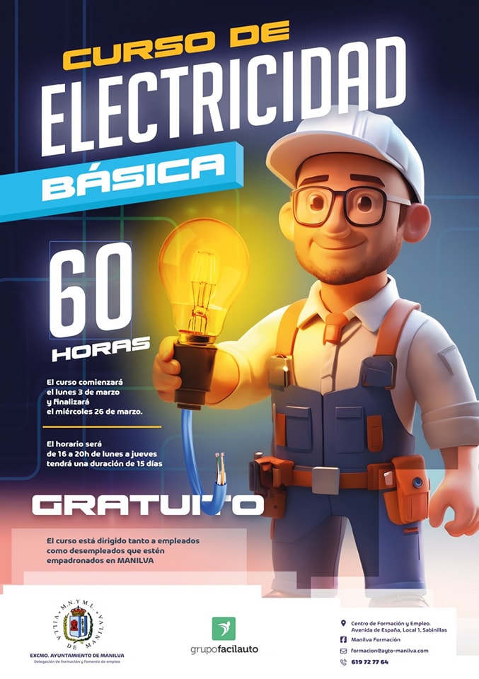 Desde el área de Formación del Ayuntamiento de Manilva, que dirige la edil Fina Gómez, se pone en marcha un curso de electricidad básica de 60 horas.